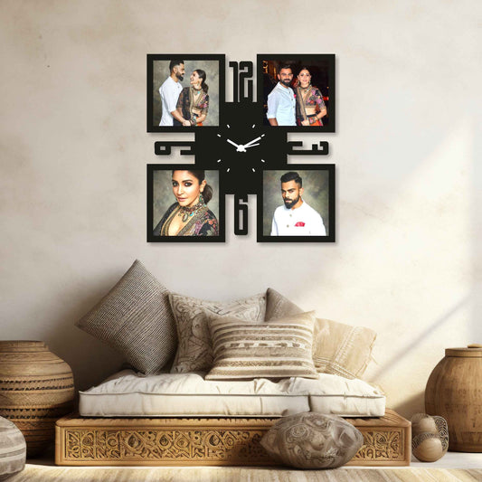 Large Square Personalized Photo Wall Clock – Display 4 Special Memories