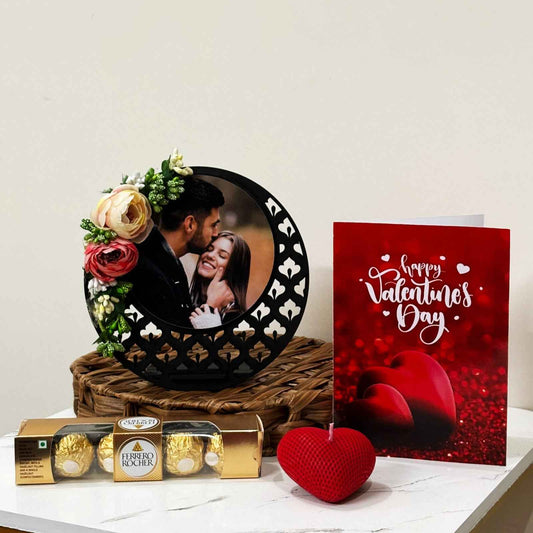 Valentine Personalized Gift Hamper with Table Frame, Greeting Card, Candle, and Chocolates - 1 Photo for customization